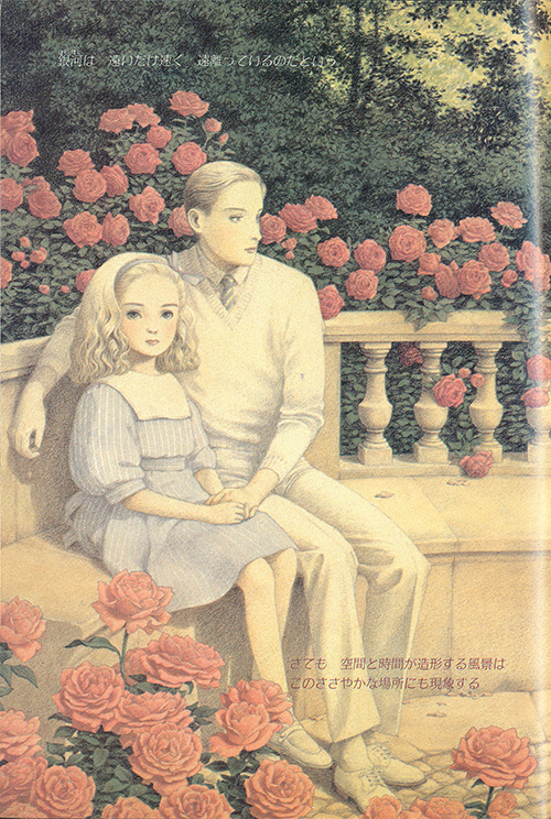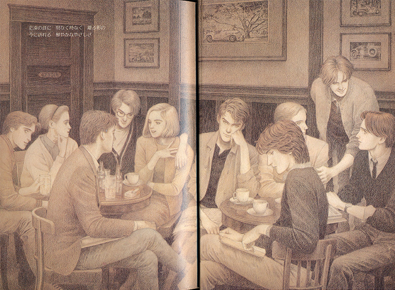 「グレイッシュ・グリーンの冬より北斗の神々」と、和服の少年少女