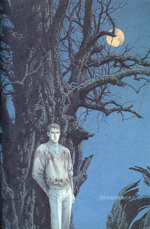 「グレイッシュ・グリーンの冬より北斗の神々」と、和服の少年少女